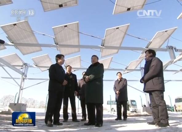 今日,驱车一个多小时,踏着皑皑白雪来到河北省张家口市张北县小二台乡德胜村。主席首先来到该村400kW村级扶贫电站。当得知,光伏扶贫电站可为农户每年人均增收3000元后。主席很高兴,希望把这种切实可行的事抓紧做起来!