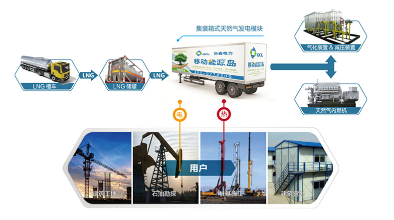 协鑫LNG移动能源站项目因其能效利用合理、损耗小、污染少、运行灵活、系统经济性好、运行成本低、自动化程度高等多种不可替代的优势,颠覆了传统能源的生产和消费模式,为工厂、工地、临时电源采用天然气等清洁能源替代柴油发电机迈出了坚实的一步。
