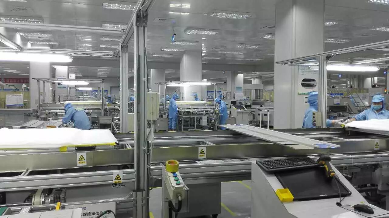 这次集中参观的二期车间,采用的是莱斯的自动化生产线,新的4栅线、5栅线以及胶带与硅胶并线等工艺技术都密集在一条条自动运行的生产线上。二期的布局比一期更加优化,同样面积的一期厂房铺设了4条生产线,而二期铺设了8条,即使不计节省的土地、建设成本,仅每月动力成本就可节省50多万。在降低人工成本的同时,更重要的是减少了人工影响产品质量的因素。