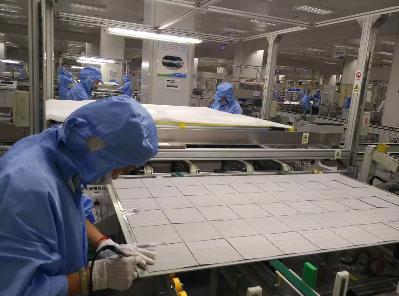 经过五年的建设,公司产品技术竞争力、成本控制力、品牌影响力均居行业领先水平。这里有目前行业单线产能最大的自动化双玻组件生产线,有达到极限的行业最高产线密度。公司主要运营指标与行业内同类企业相比实现了投资效益最佳、产能效率最高、成本控制最好、资产质量最优。目前,电池效率提升至18.4%,位居行业前列;累计销售太阳能组件1813.56兆瓦,年度可发电21.8亿千瓦时,节约标煤76万吨,减少温室效应气体CO2、SO2、氮氧化物、粉尘排放200万吨。